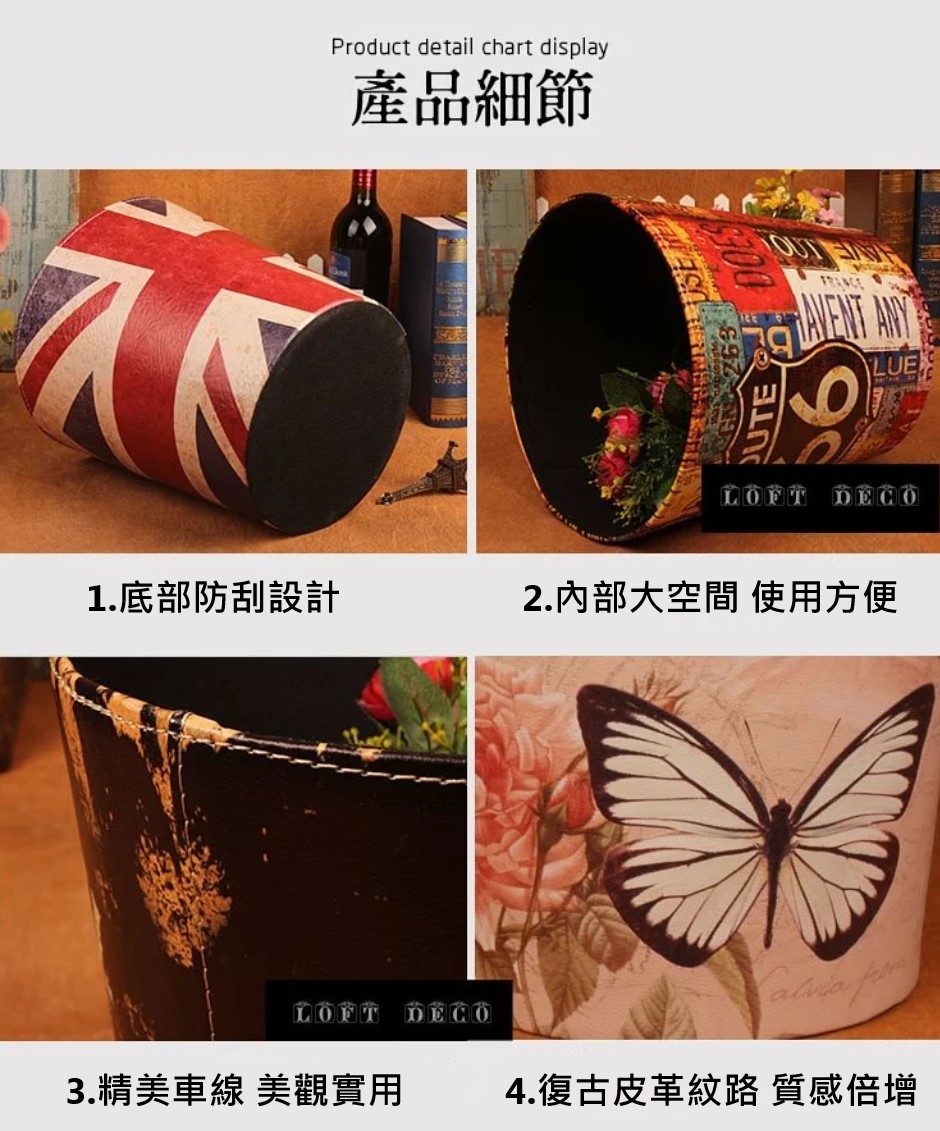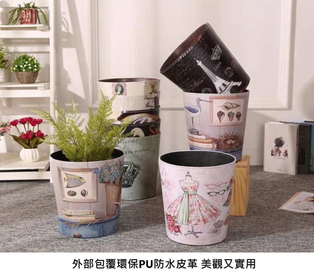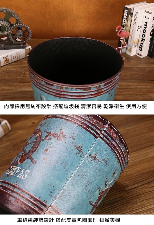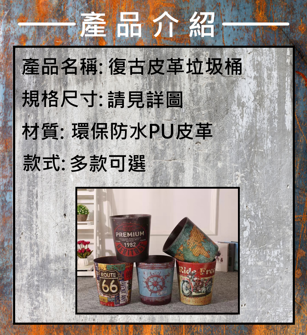 復古皮革垃圾桶(收納桶)