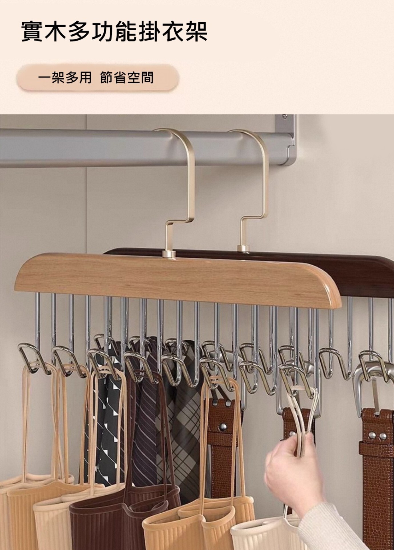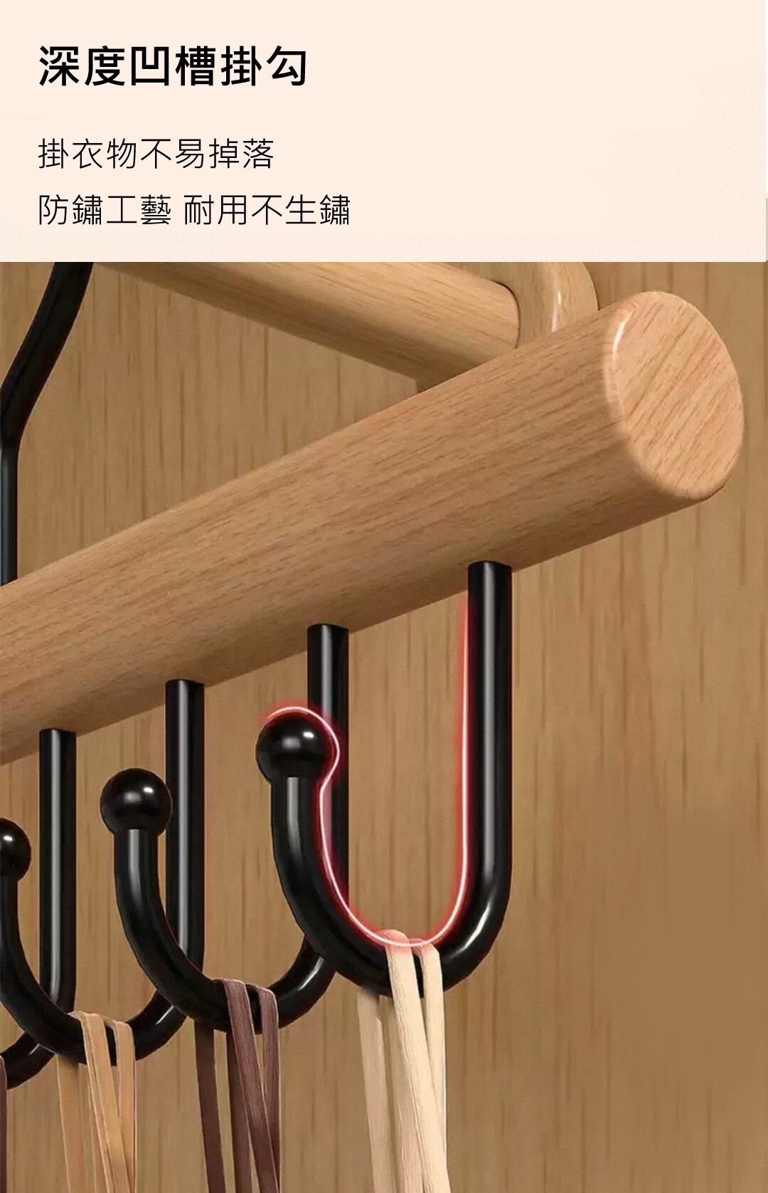 這款掛勾式木質衣架 堅固木質結合金屬掛勾