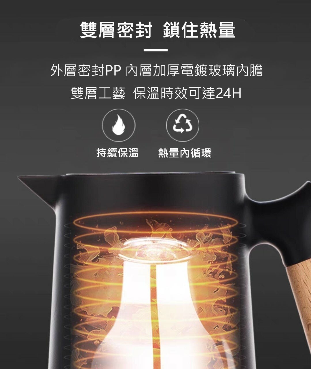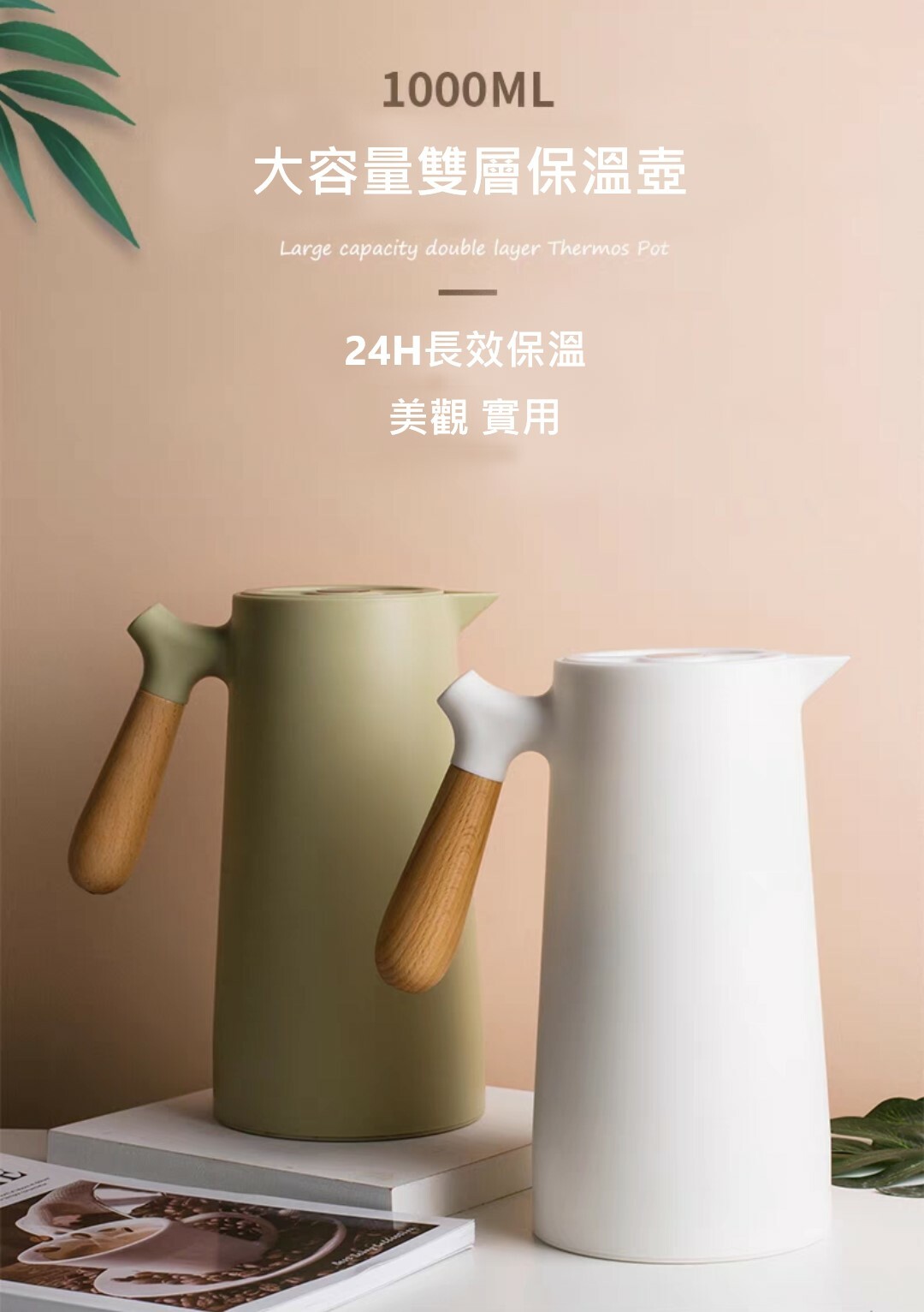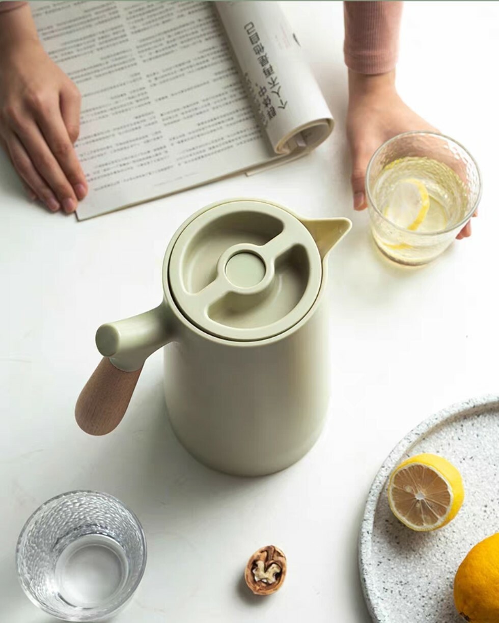 北歐風木柄雙層保溫壺
